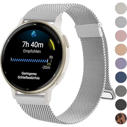 Mugust Garmin Vivoactive 5/Garmin Vivoactive 3/Vivomove 3/HR/Luxe/stil armband för män och kvinnor, ersättningsarmband i rostfritt stål metallnät för Garmin Forerunner 55/245/645, 20 mm