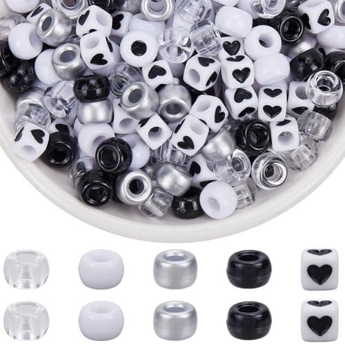 SOFPLAT 1 låda 1 000 st 6 x 9 mm ponny pärlor vit svart glitter kandi-pärlor bulk semester rund plast ponny hjärta berlocker tillbehör för smyckestillverkning tillbehör gör-det-själv armband örhängen