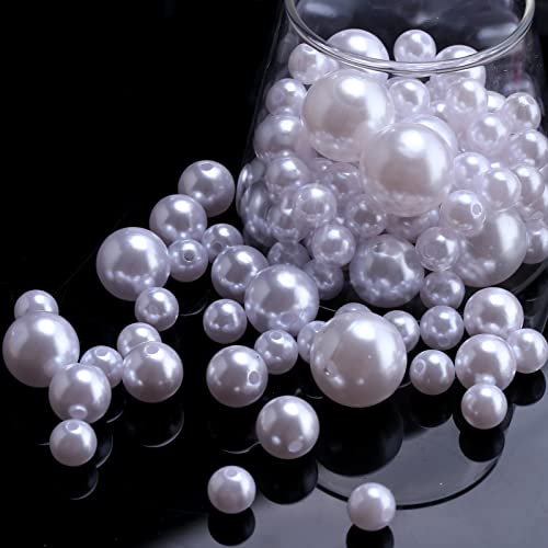 YIEUR Pärlor vitt glitter, 8 mm pysselpärlor med hål för pyssel, lös konst pärlemor akryl pärlbröllop för armband hallkedja dekoration hantverk smyckestillverkning (stor vit)