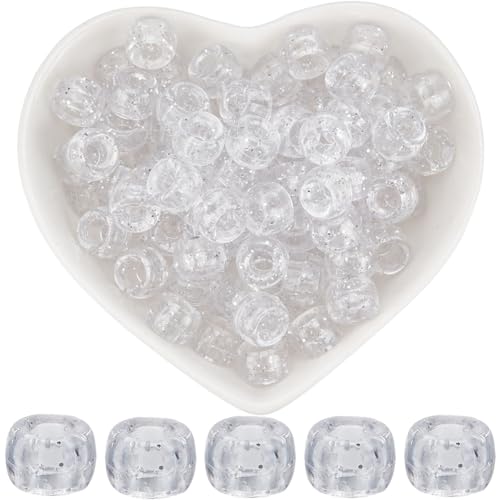 SOFPLATE 1 låda 500 st 9 x 6 mm klara ponnypärlor glittrande plastpärlor stora genomskinliga glittrande kråka tunna kandi glitter utrymmen för hantverk halsband armband hårflätor nyckelringar ornament