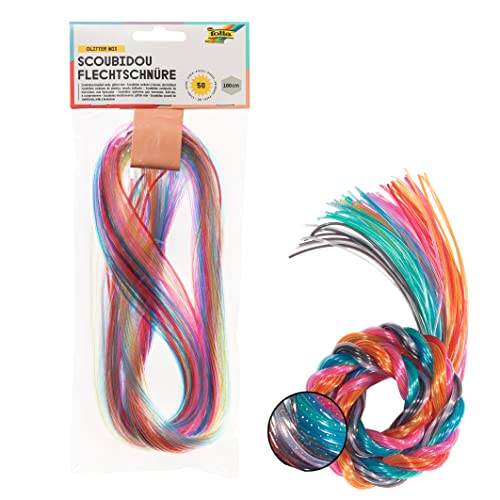 folia 732050 – flätsnören, med glitter, 50 stycken sorterade i 10 olika färger – perfekt för flätning av armband, nyckelringar etc.