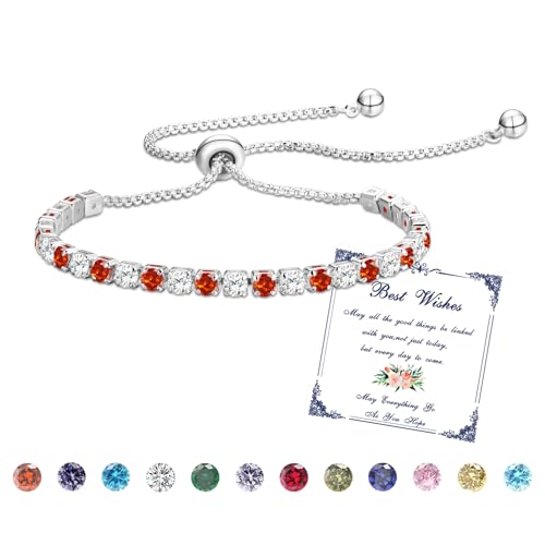 Armband Kvinnor Silver Tennis Armband med Birthstone i 12 Färger, Justerbar Glitter Armband Kvinnor,Presenter till Kvinnor (01-Januari)