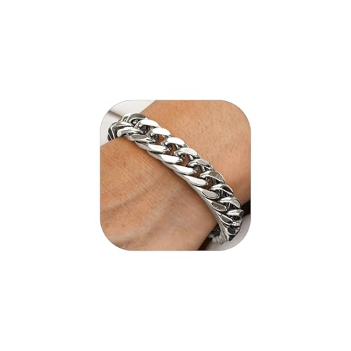 Dankadi Massivt kubanskt armband 10 mm i 925 silver för herr, klassisk slät och kanelure kubansk kedja 7"-10 tum, smycken, födelsedagspresent, för vuxna, far, 8.5 inch, Sterlingsilver