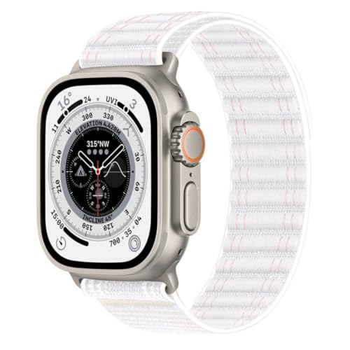 Kompatibel med Apple Watch Armband 46mm 45mm 44mm 49mm Män, Flätat Nylon klockarmband kardborreband för iWatch Series 11 10 9 8 7 6 5 4/SE 3 2/Ultra 3 2, tyg Sportband för Iphone Watch White