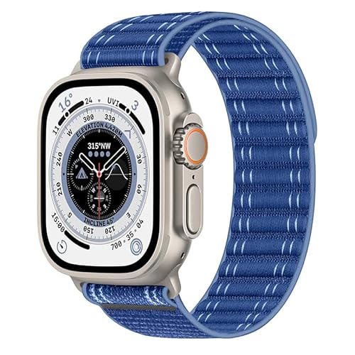 Kompatibel med Apple Watch Armband 46mm 45mm 44mm 49mm Män, Flätat Nylon klockarmband kardborreband för iWatch Series 11 10 9 8 7 6 5 4/SE 3 2/Ultra 3 2, tyg Sportband för Iphone Watch Lake Blue