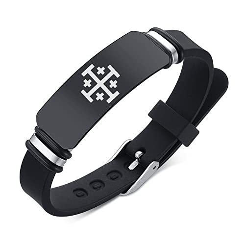 KBNSUIAN Snyggt svart silikon korsfarare Jerusalem kors armband 5 tvärstänger Israel amuletter armband för skydd katolska grekiska kors kristna tro påminnelse smycken för män kvinnor, Rostfritt stål Silikon, Rostfritt stål
