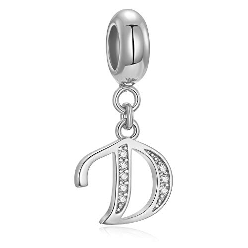 Berlocker i 925 sterlingsilver med kristallinlägg, bokstaven A–Z, kompatibel med europeiska bokstavs-D armband och halsband