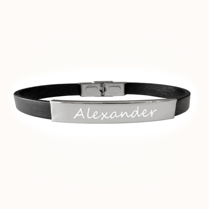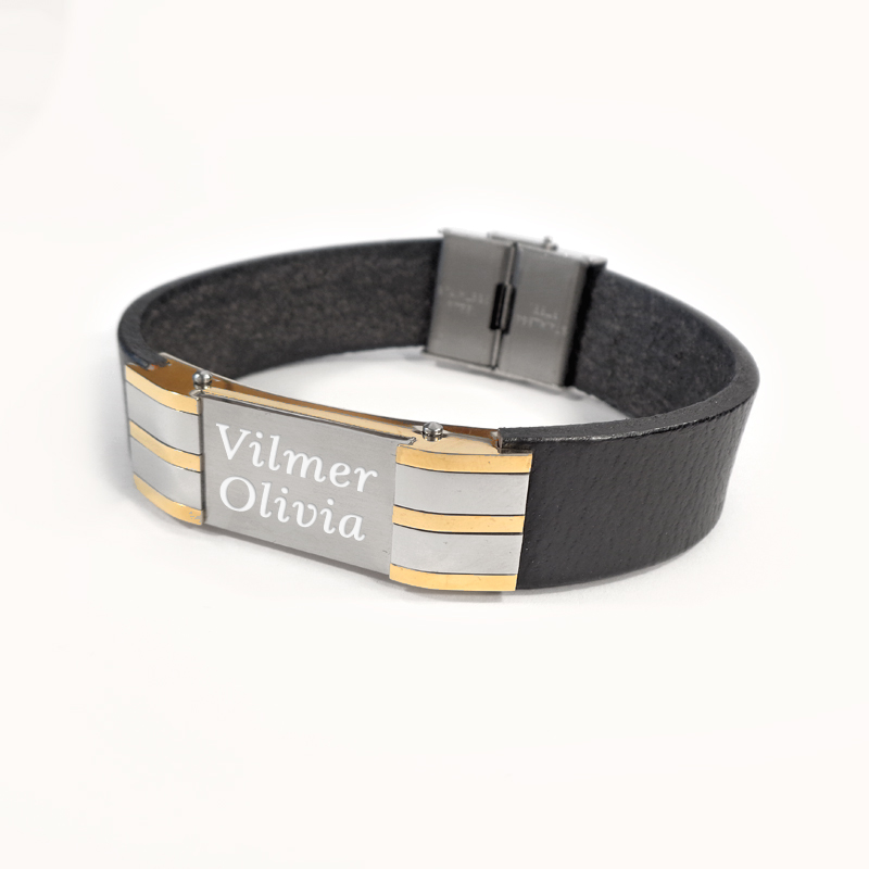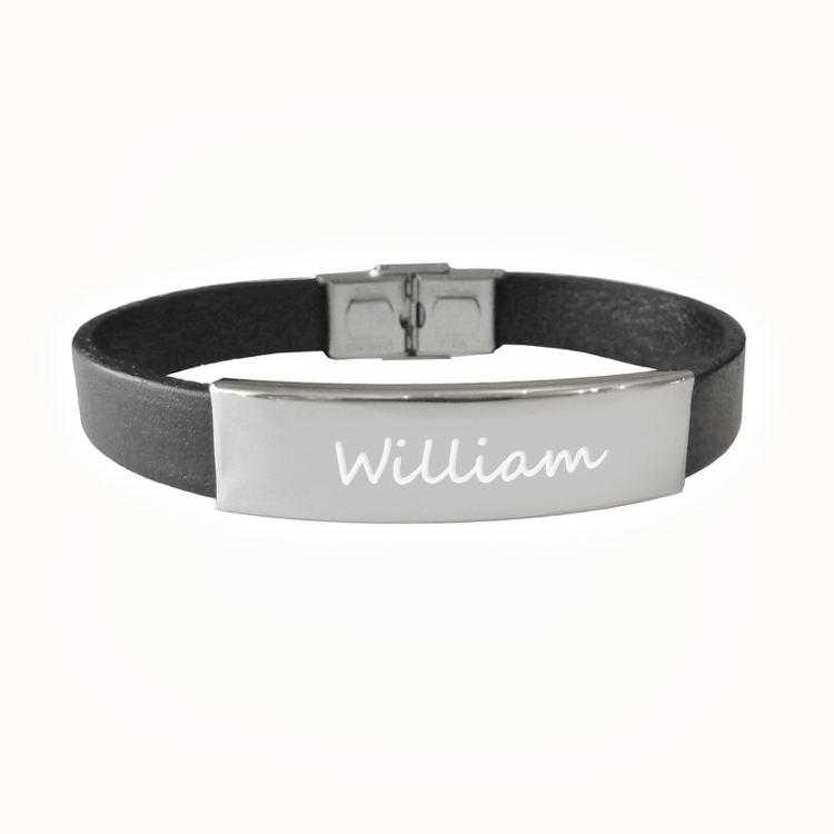 by BILLGREN Läderarmband, gravyr, stålbricka, svart 8104 Med-gravyr-349kr