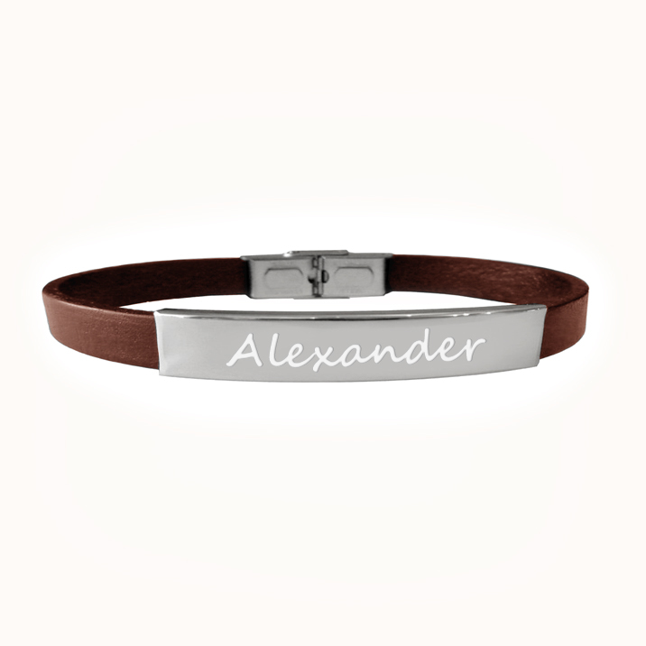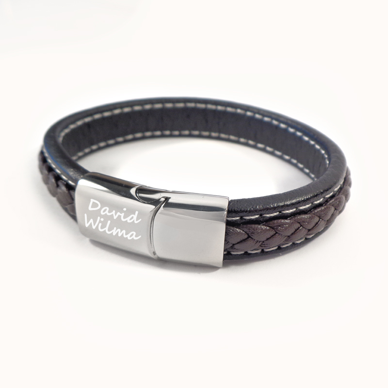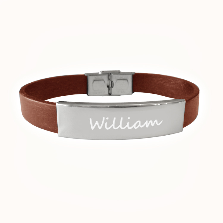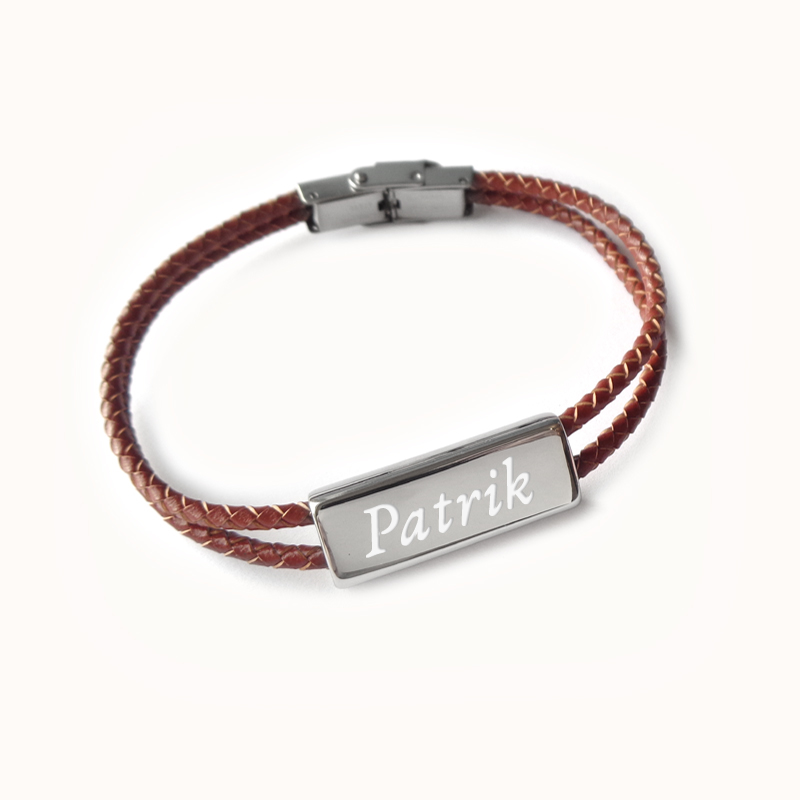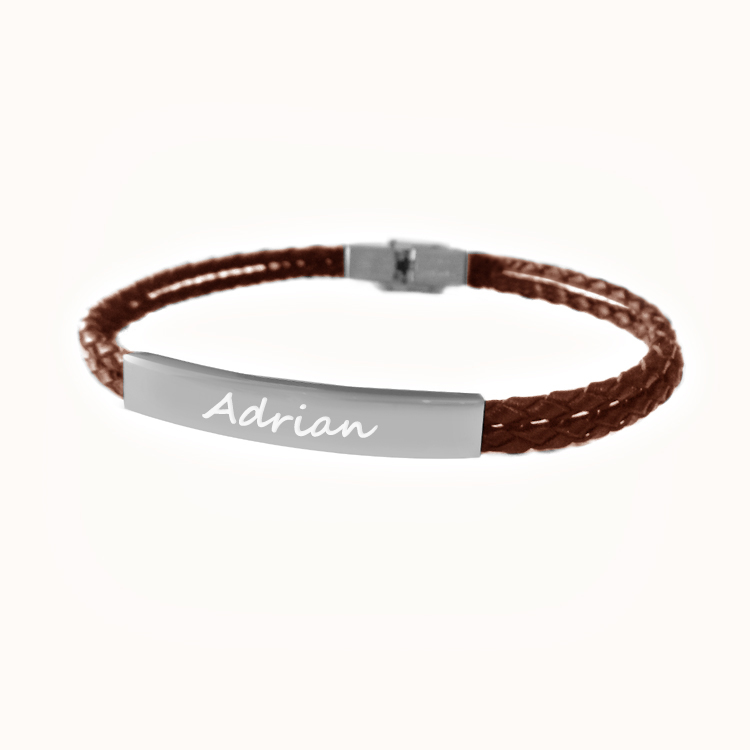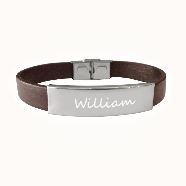 Brunt personligt läder armband med gravyr - Rostfritt stål