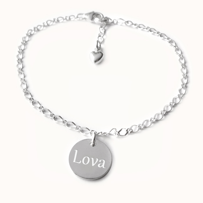 Personligt figaro armband med gravyr & hjärta - Rostfritt stål