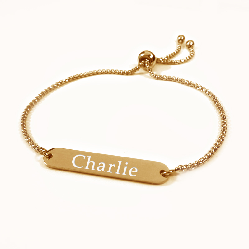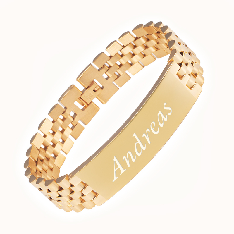 Inställbart personligt guld armband med gravyr - Rostfritt stål
