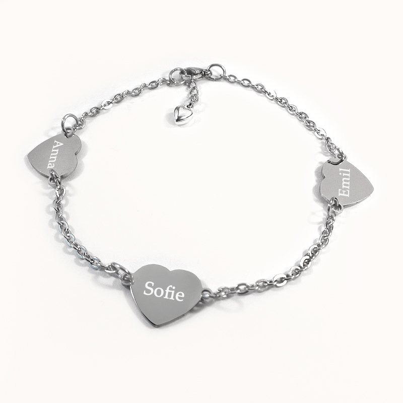 Personligt armband med gravyr, tre hjärtan - Rostfritt stål