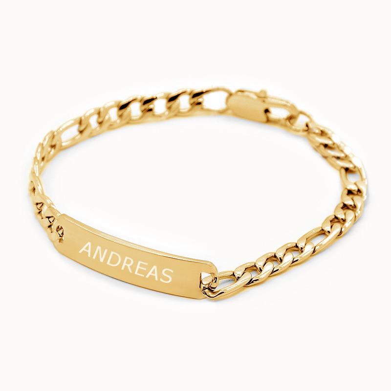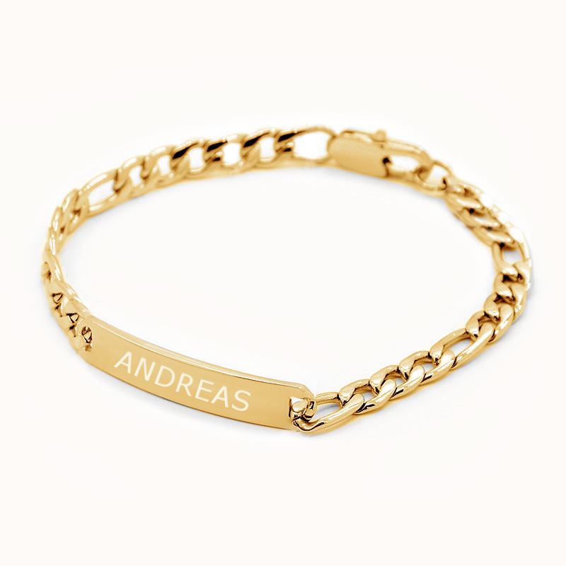 Guld figaro personligt armband med gravyr, 7mm - Rostfritt stål