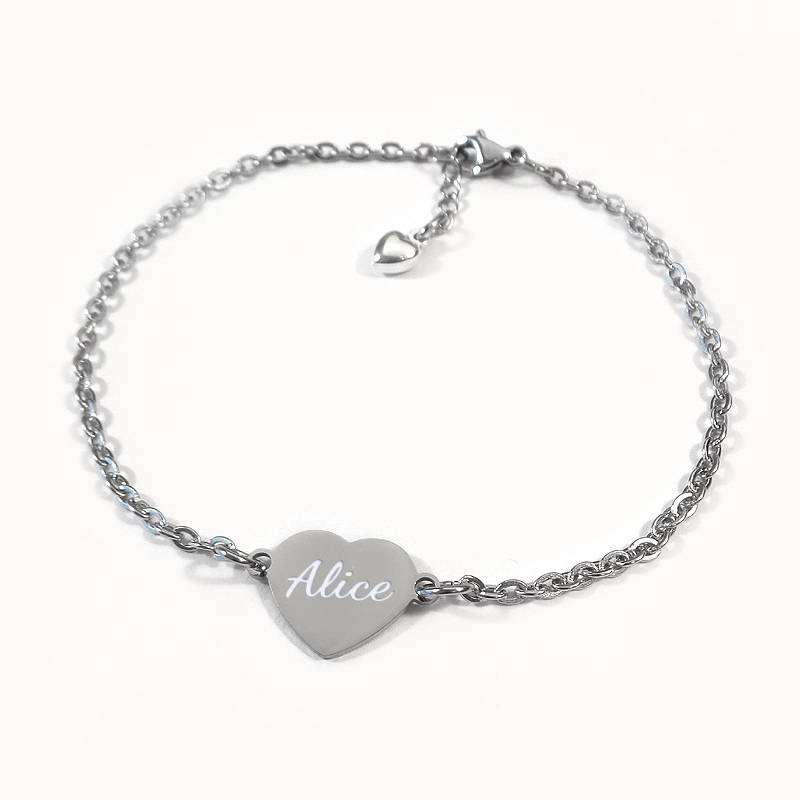 Hjärta, personligt armband med gravyr - Rostfritt stål