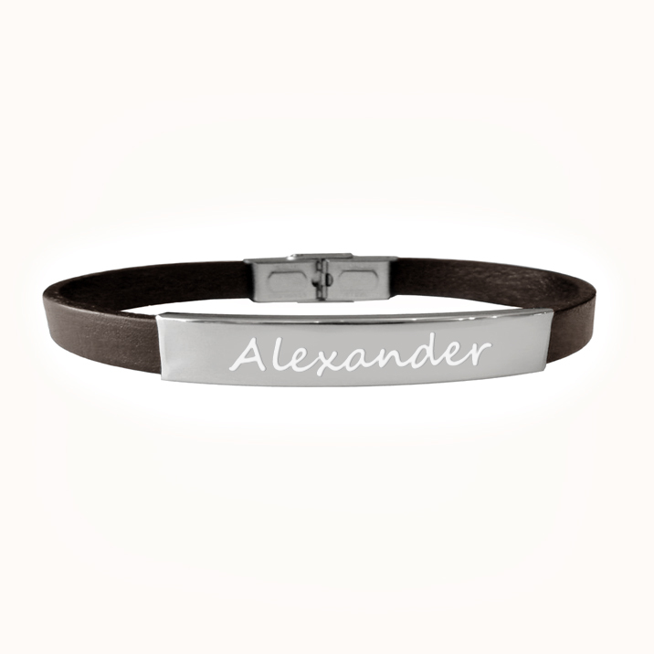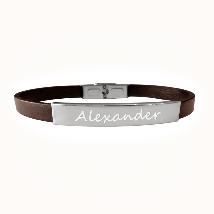 Mörkbrunt personligt läder armband med gravyr - Rostfritt stål