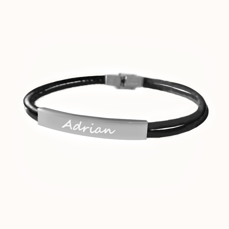 Svart personligt läder armband med gravyr - Rostfritt stål