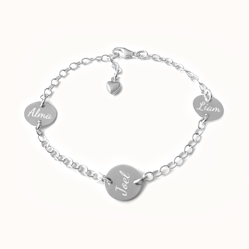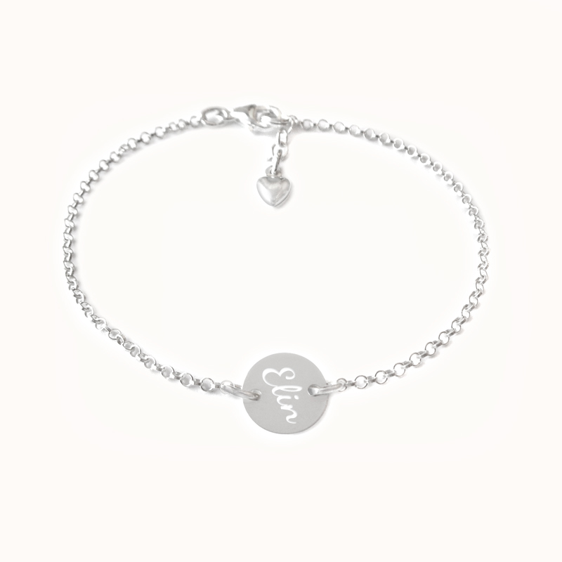Elli Armband damer cirkel plattor personlig 925 sterlingsilver gravyr, 160, Fasett kant,