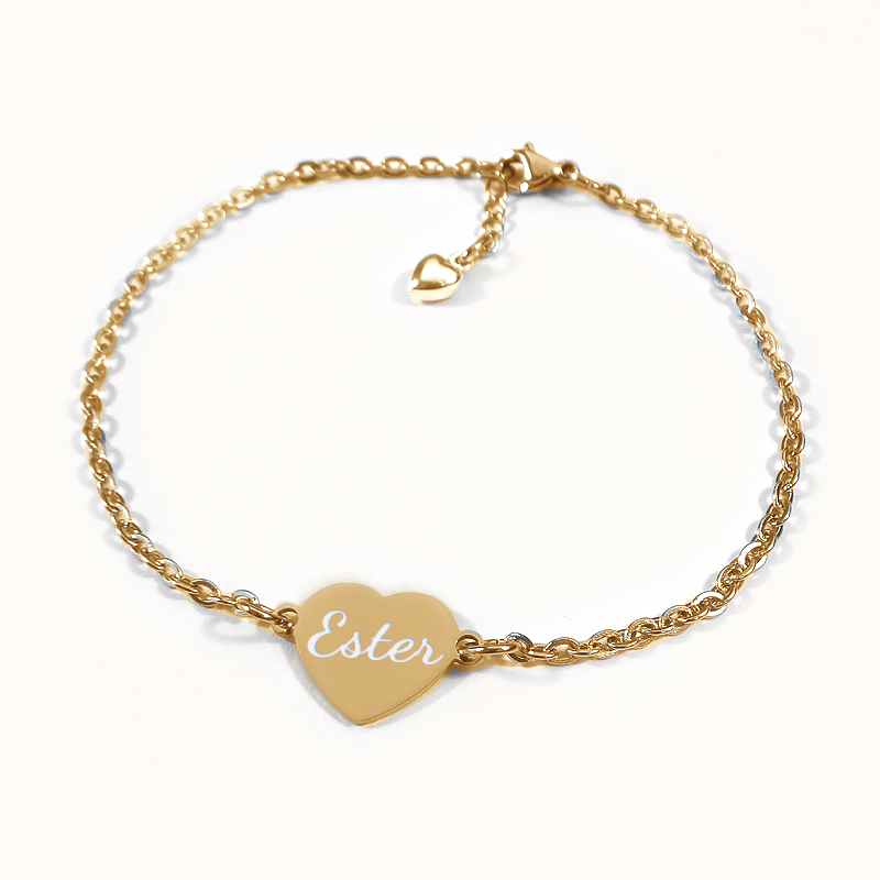 Personligt guld armband med gravyr med hjärta - Rostfritt stål