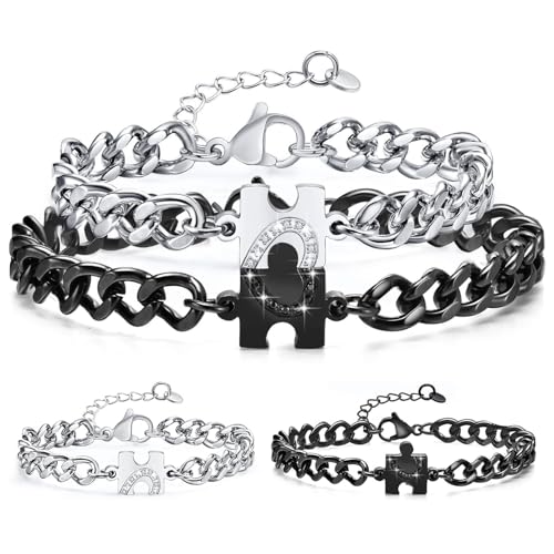 APRRMLIZW Par armband partnerarmband med pussel par armband med gravyr justerbar pansarkedja i silver och svart magnetiska partnerarmband gåva för dig och honom par, Große, Rostfritt stål, Nej