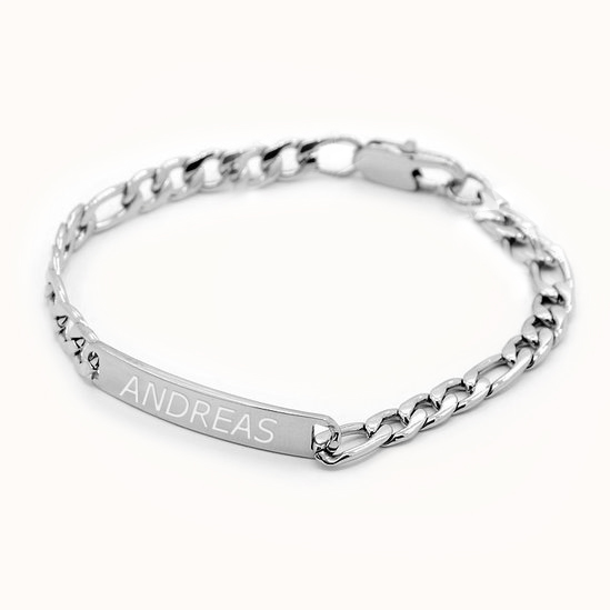 Personligt armband med gravyr, Figaro 7mm - Rostfritt stål