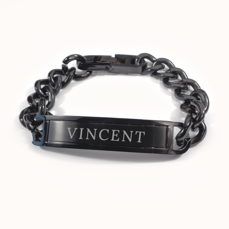 Svart figaro personligt armband med gravyr - Rostfritt stål