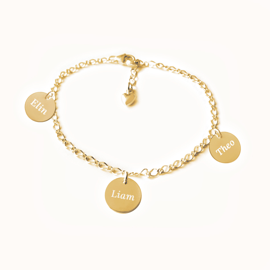 Personligt guld armband med gravyr & tre coins - Rostfritt stål