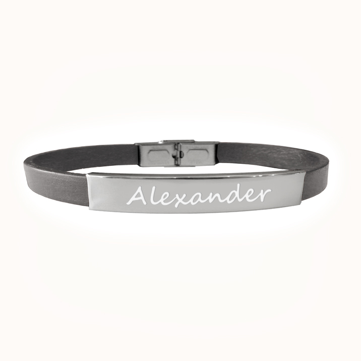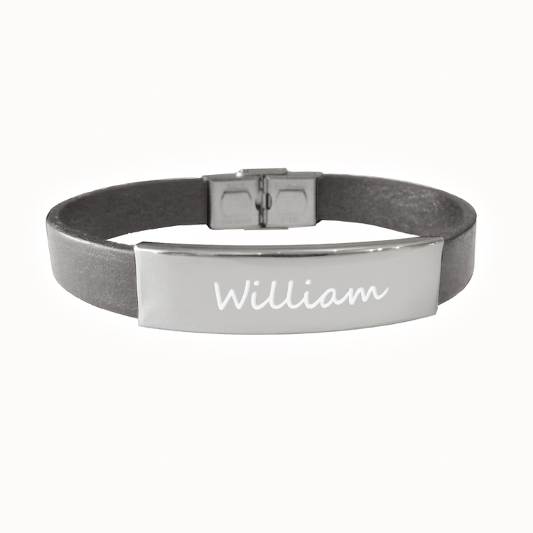 Grått personligt läder armband med gravyr - Rostfritt stål