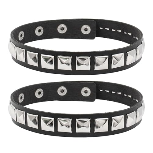 Manfnee Läder manschett armband punk armband rock flätade nitar armband för män kvinnor justerbar, 9 inch, Läder