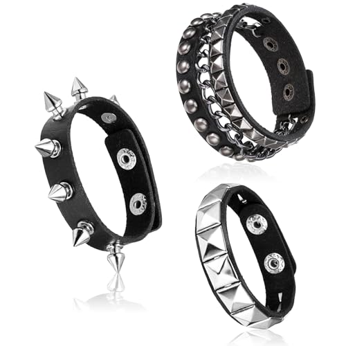 JIYIN 3 stycken punk ockuperat armband, punk läderarmband svart gotiskt armband nitar armband unisex gotiskt armband för halloween jul kostymfest konsert