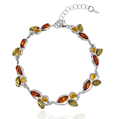Stilrent Bärnsten Armband Med Äkta Silver 925 Och Justerbar Längd