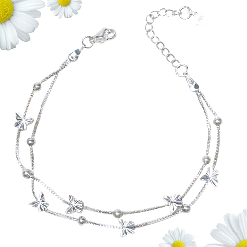 PIWOSGOL Armband silver 925, fjärilsarmband med presentförpackning, armkedja damer silver justerbart lager, födelsedag, mors dag, julklapp till mamma, fru, flickvän