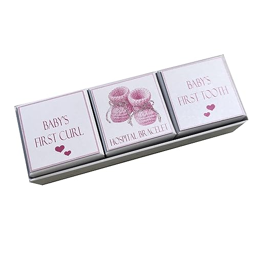 Låda för förvaring av den första bebislocken, armbandet och tanden från White Cotton Cards (rosa bebisskor) 3 i 1.