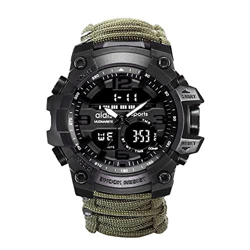 XHJL Digital armbandsur, taktiska militära nödklockor unisex med paracord/visselpipa/tändare/skrapa/kompass och termometer, utomhusutrustning 6-i-1, grön, sport
