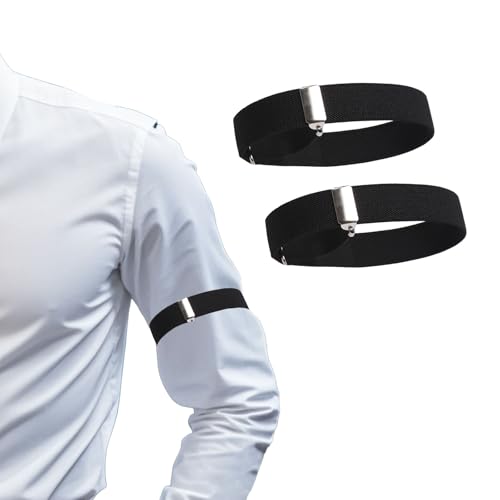 KAPSING 2 stycken ärmhållare, justerbara armband, armarmar, skjorta, strumpeband, tubband, ärmskydd, för män kvinnor långärmad skjorta (svart), svart, one size