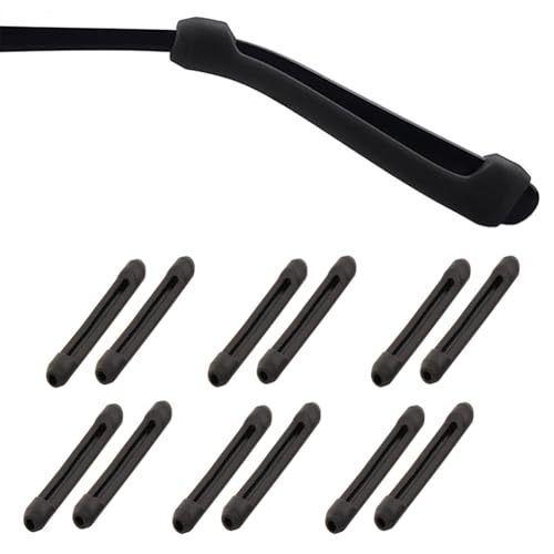 PIPJOY Premium ultramjuk halkfri silikon glasögon tempel tips – 6 par örongrepp ärmhållare (Svart)