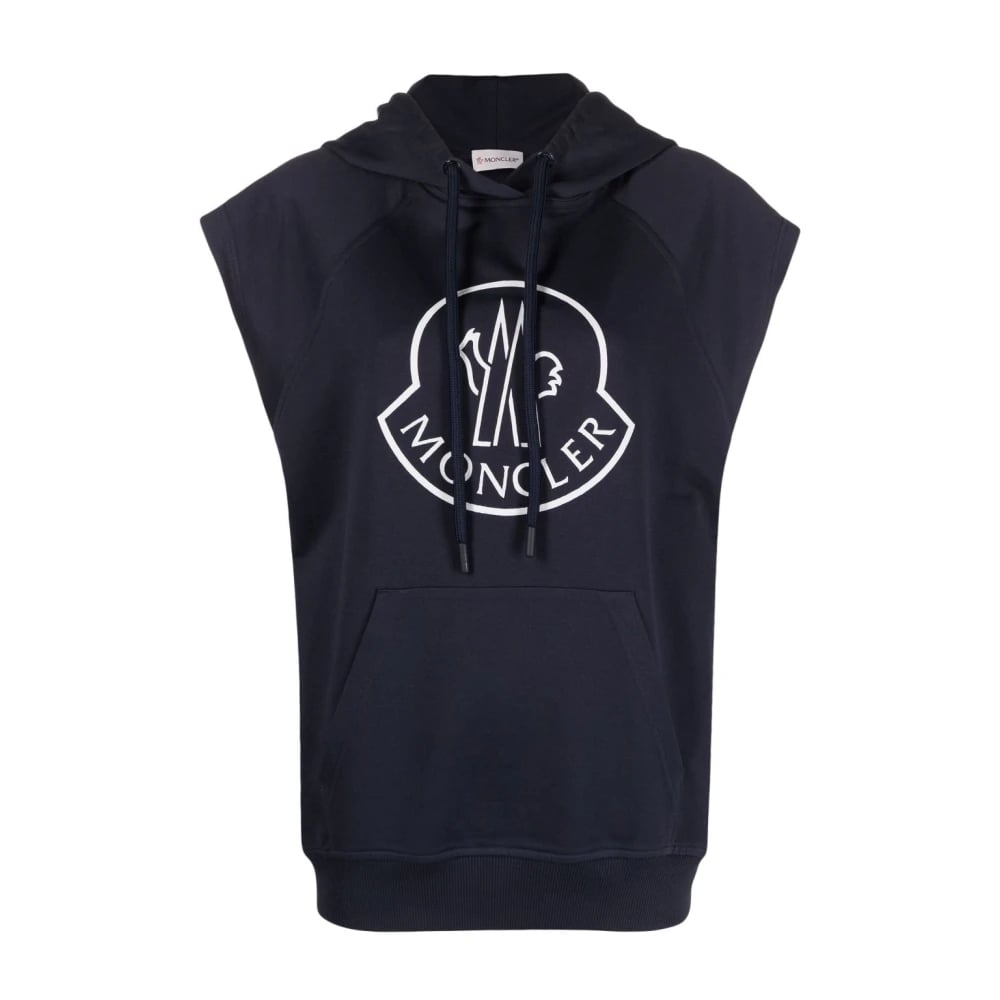 Moncler, Sweatshirts & Hoodies , Dam, M, Bomull, Ärmlös Logotyp Hoodie Navy Bomull