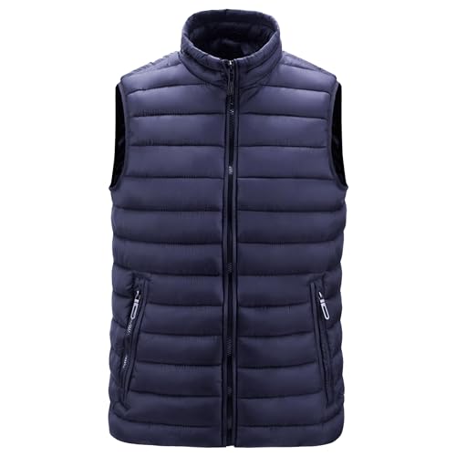 ZDJSWJ Lätt dunväst för män ärmlös vandringsjacka mjuk tjock kappa plus quiltad väst, Färg: blå, XL