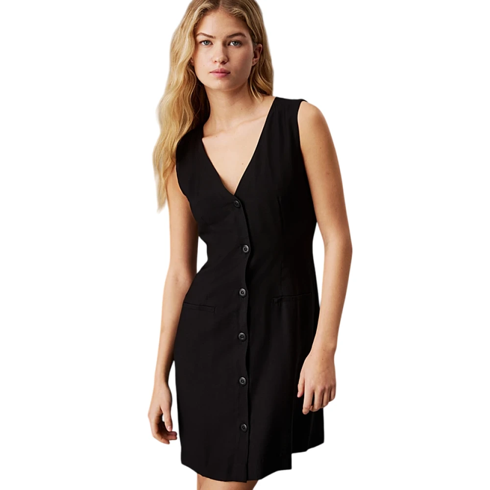 Calvin Klein, Klänningar , Dam, XS, Polyester, Stretch Crepe Ärmlös Klänning