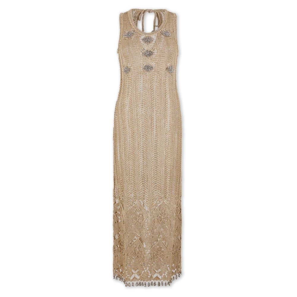 Rabanne, Klänningar , Dam, S, Virka ärmlös lång klänning ljusguld