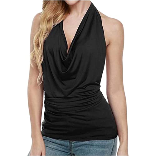 Kvinnor Halterneck Väst Toppar Sommar Ärmlös Vanlig T-shirt Cami Toppar Kvinnor Sexig Enfärgad Halterneck Ärmlös Smal Passform Skjorta T-tröjor Halterneck Sexig Väst Dam Ledig Ärmlös Väst, A-svart, XL