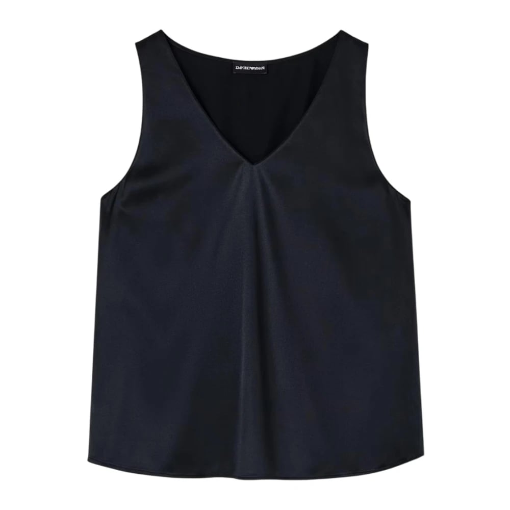 Emporio Armani, Toppar , Dam, 2Xs, Silke V-ringad Ärmlös Skjorta Svart