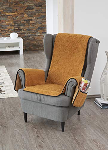 Fågelskydd i ny ull med armstödsskydd, senap, lugg av 100% ny ull, mittdel ca 160 x 50 cm, armstödsskydd ca 60 x 40 cm