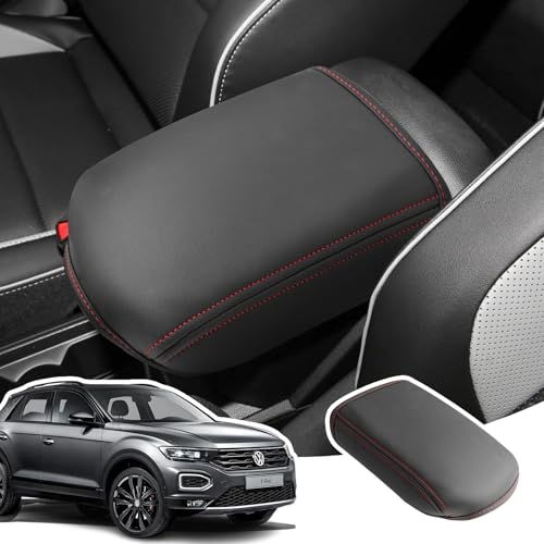 LANGBEAN Armstödsöverdrag för VW T-ROC 2018-2025, Mittarmstöd Skydd i PU-läder, Troc Armstödsskydd Halkfria Tillbehör för Att Höja Armstödet, Röd