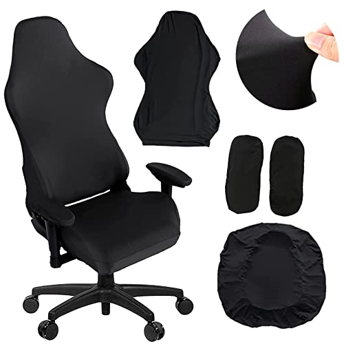 gamingstolsöverdrag - 4 stycken kontorsfåtölj/gamingfåtöljöverdrag set med armstödsskydd/stolsöverdrag/stolsöverdrag för gamingstol (svart)