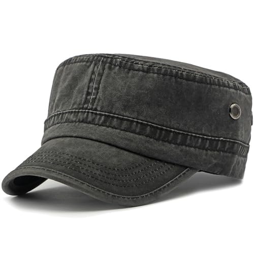 Kuyou Unisex Army Military Flat Cap Vintage bomull baseballkeps, 006svart, En Storlek