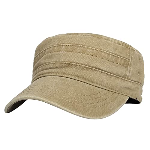 CHENNUO Army Cap armémössa herr platt militär basebollkeps sport vandring toppig keps, Beige-1, 56/60