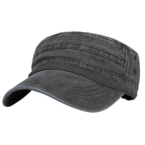 MUYAN Unisex army militär platt keps vintermössa herr bomull army keps cadet hatt justerbar basebollkeps, Svart -Xl, 56/60