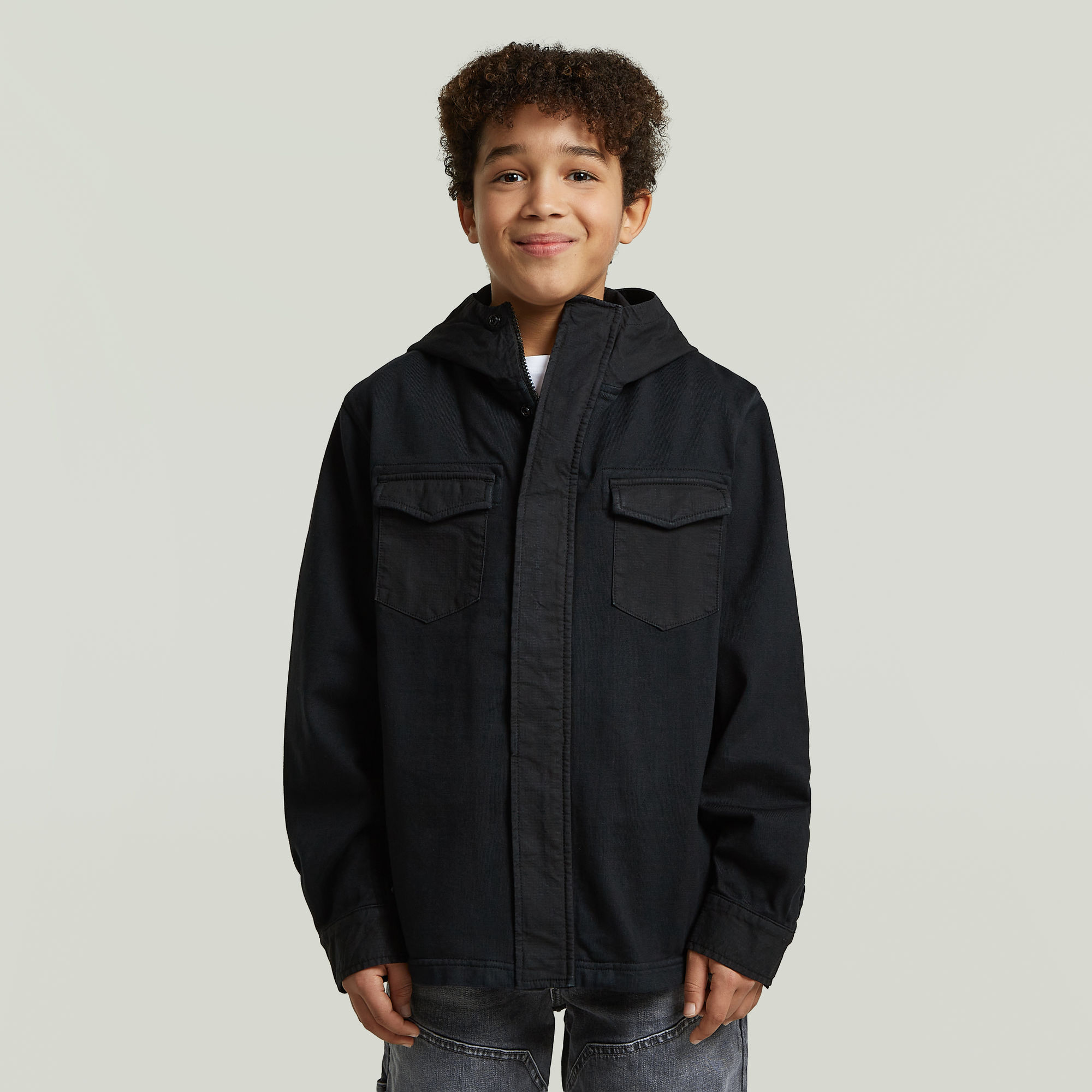 Boys Army Hooded Zip Overshirt - Black - boys
