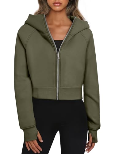 Trendy Queen Womens Zip Up Hoodies Jackets Cropped Sweatshirts Fleece Fall Outfits Casual Comfy Y2k Tops Winter Clothes 2025 ArmyGreen M