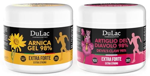 DuLàc, Djävulens klo 98% och Arnica Gel 98%, Set om Kroppskräm och Gel 2 x 500 ML, Perfekta för att Massera Huden Muskler och Leder, Dermatologiskt testade, Nickeltestade, Made in Italy, 1000 ML